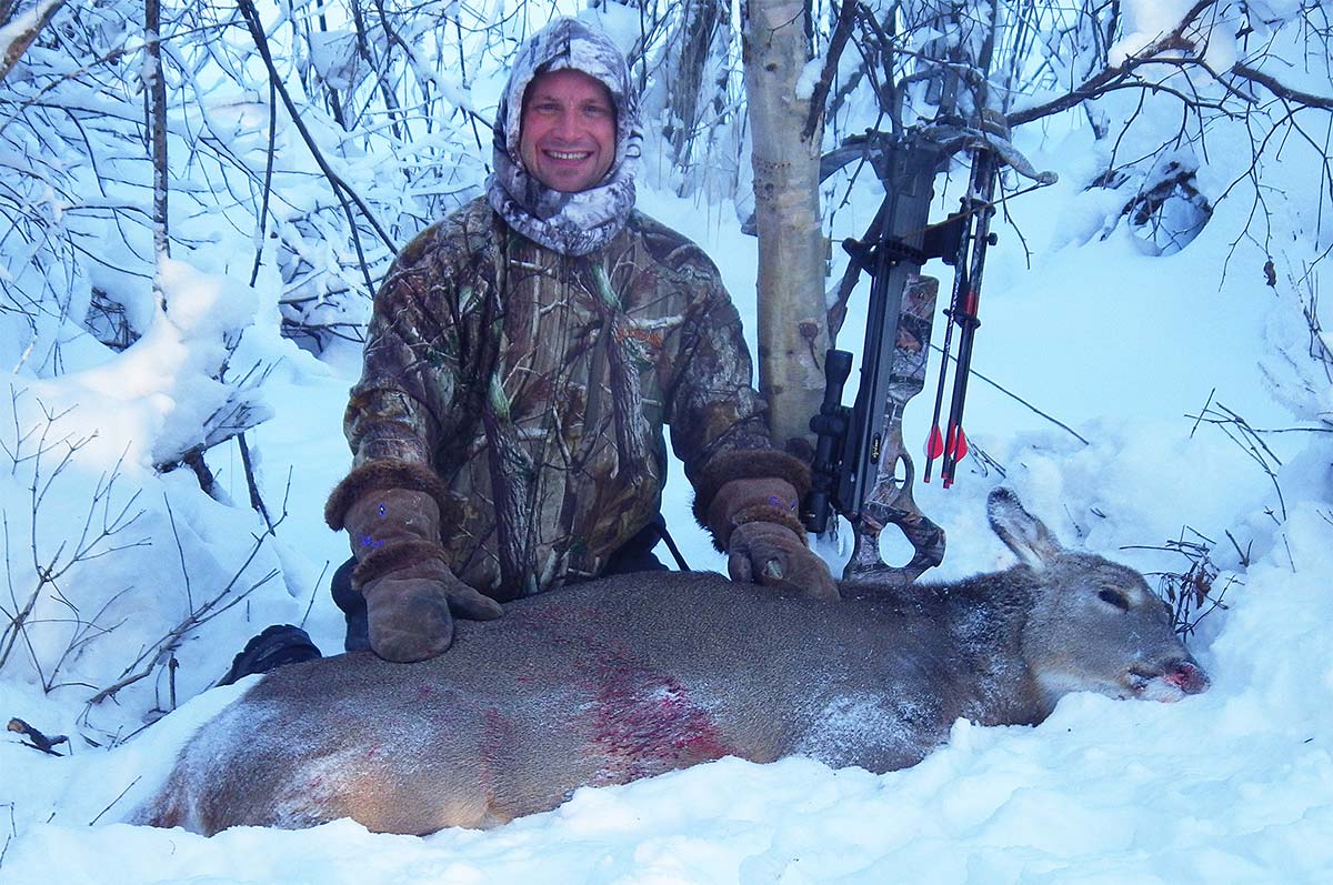 Hunting with arrows when the mercury dips below zero can be quite comfortable if you’re prepared. Ensuring your equipment is working and free of snow and ice buildup is critical for making the shot. Hunting and travelling smart with proper clothing, food and a safe, smart plan will make for an enjoyable day in the field, with an excellent chance to harvest an animal. One of the great things about hunting with snow on the ground is that the blood trails are easiest to follow, so it shouldn’t take long to follow up on your shot. Shoot straight and stay warm!