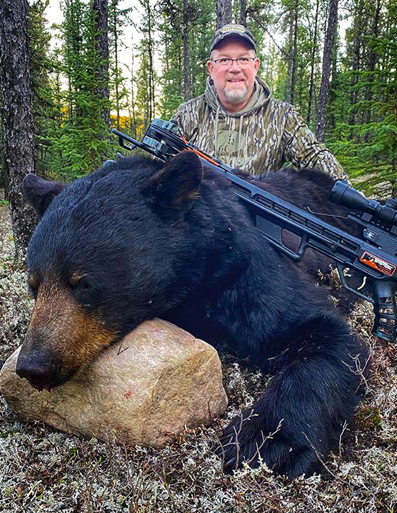 A fly-in trip into northern Saskatchewan for black bears meant weight restrictions. The toil over what to pack and what to sacrifice was daunting. Ultimately, the decision to use a Wicked Ridge Blackhawk 360 with conventional forward-deploying limbs proved wise. The forward-draw limbs are 15 inches wide when cocked, and the bow’s total length is 35.5 inches. The most important note for the trip was the weight at an even 6 pounds. A power stroke of 13.5 inches generates 350 fps and 109 FP KE with a carbon arrow. The bow is skeletonized to reduce weight but features modern components that produce accurate and consistent arrow placement downrange. With a retail price of under $400, it was hard to beat.