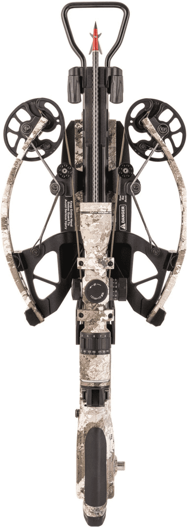 The NEW, longer dovetail (+1.5″) and NEW Scope Struts provide a rock-solid foundation for scope mounting – leading to enhanced durability and long-range accuracy. The dual aluminum Scope Struts increase strength and rigidity by 80%. In addition, the dovetail allows for more scope adjustments, heavier scope options, and provides the strength of a full-length rail without the added weight. Capable of precision downrange accuracy out to 100-yards, the included EVO-X Marksman Elite Scope decorated in matching Veil Alpine camo is a 2-8X, variable speed scope compatible with crossbows shooting up to 500 FPS. The scope’s external Target Turrets provide easy windage & elevation adjustment and drive unmatched long-range accuracy.