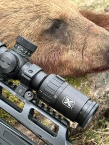 The EVO-X Marksman Elite Scope 3.0 is part of the TX 440 package. However, there is an option to have the TX 440 with a Burris Oracle X rangefinding optic. There is also a package that includes the Garmin X1i rangefinding optic. The smart technology in the Oracle X and Garmin X1i allows the user to aim, range, and shoot.
